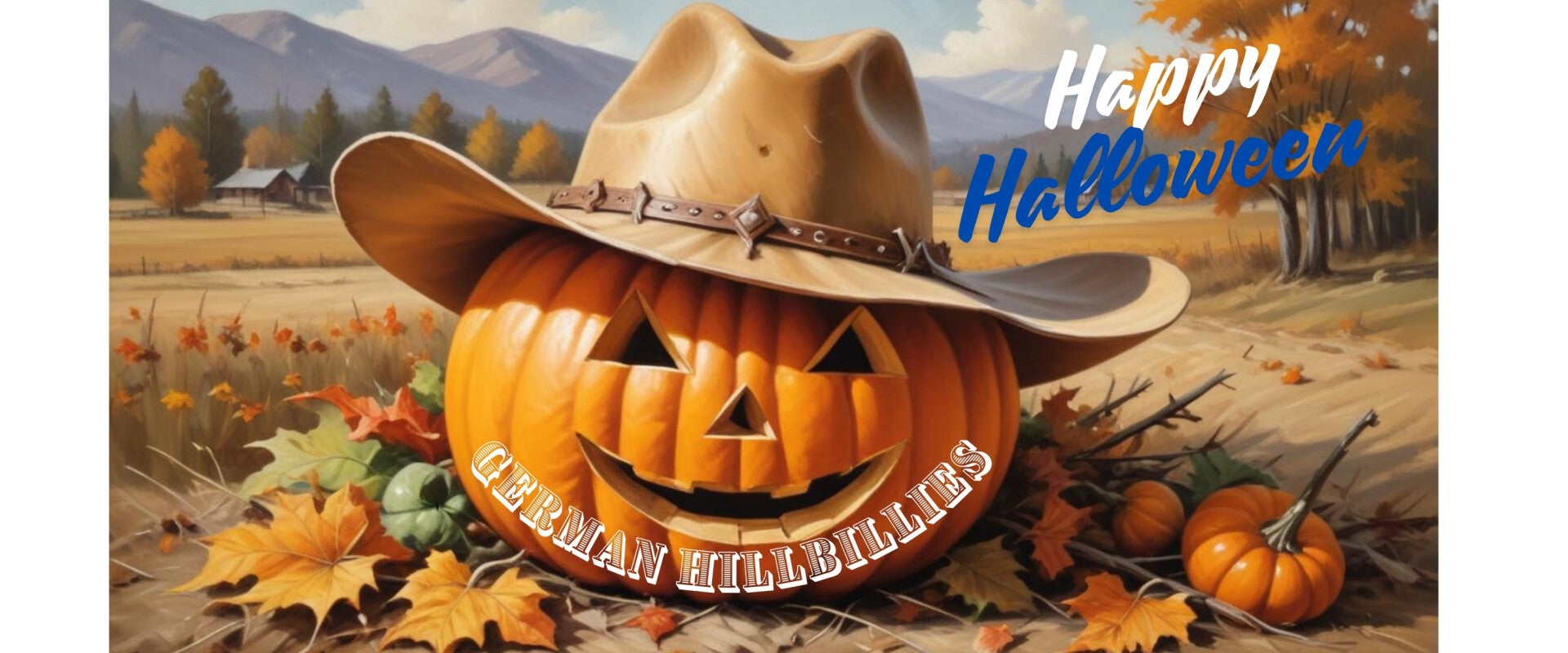 ✔️ Exklusives Halloween-Design – 4 verschiedene Motive im stilechten Hillbilly-Look: Kürbisse, Trucks, Lagerfeuer & Western-Atmosphäre.